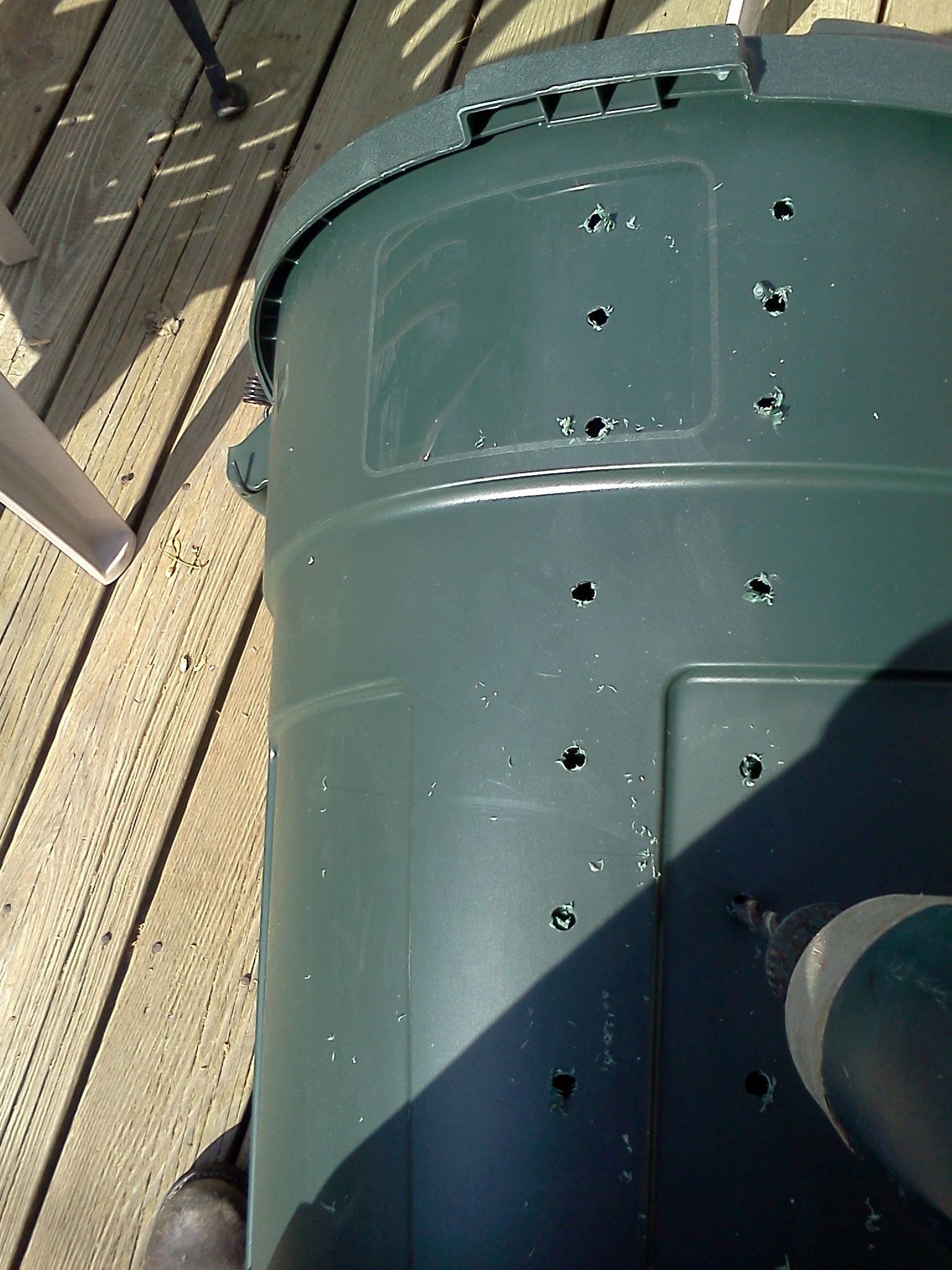 I made my composter with a trash can I got at Pleasants Hardware for $18. Here’s a series of photos illustrating the process.