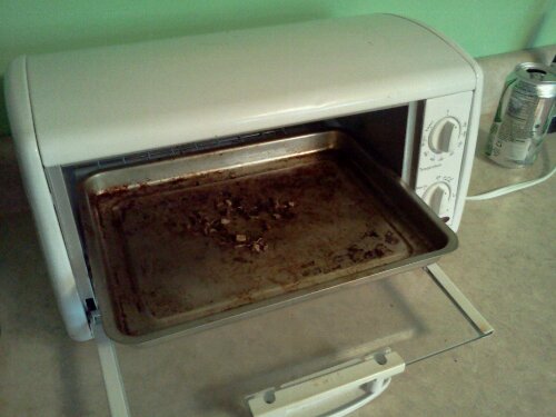 Dry the roots in a cool dry place. Small roots the diameter of a pencil dry in just a few days. Put dry roots on a cutting board and mince them the way you would garlic into coffee-ground size. Put them in the oven at 350° (I used a toaster oven) until they’re the color of coffee (just a few minutes). Be careful — they will smoke and burn! Allow to cool and store until ready to brew.
