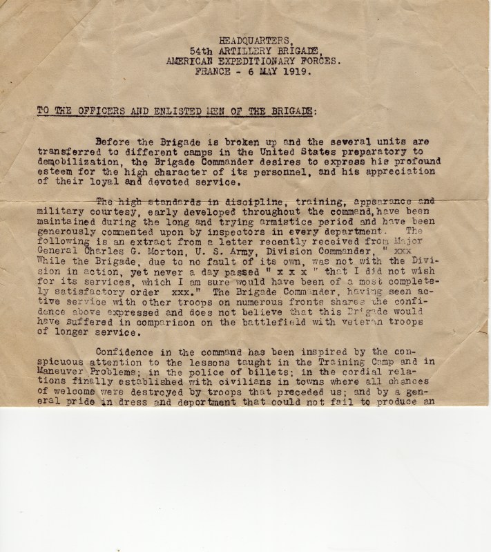 First half of thank you letter from Brigadier Gen’l L. R. Holbrook…