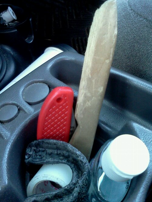 My truck console contains mouthpiece, tactical folder, wooden training knife, medical tape, and hand sanitizer. This can only mean one thing…