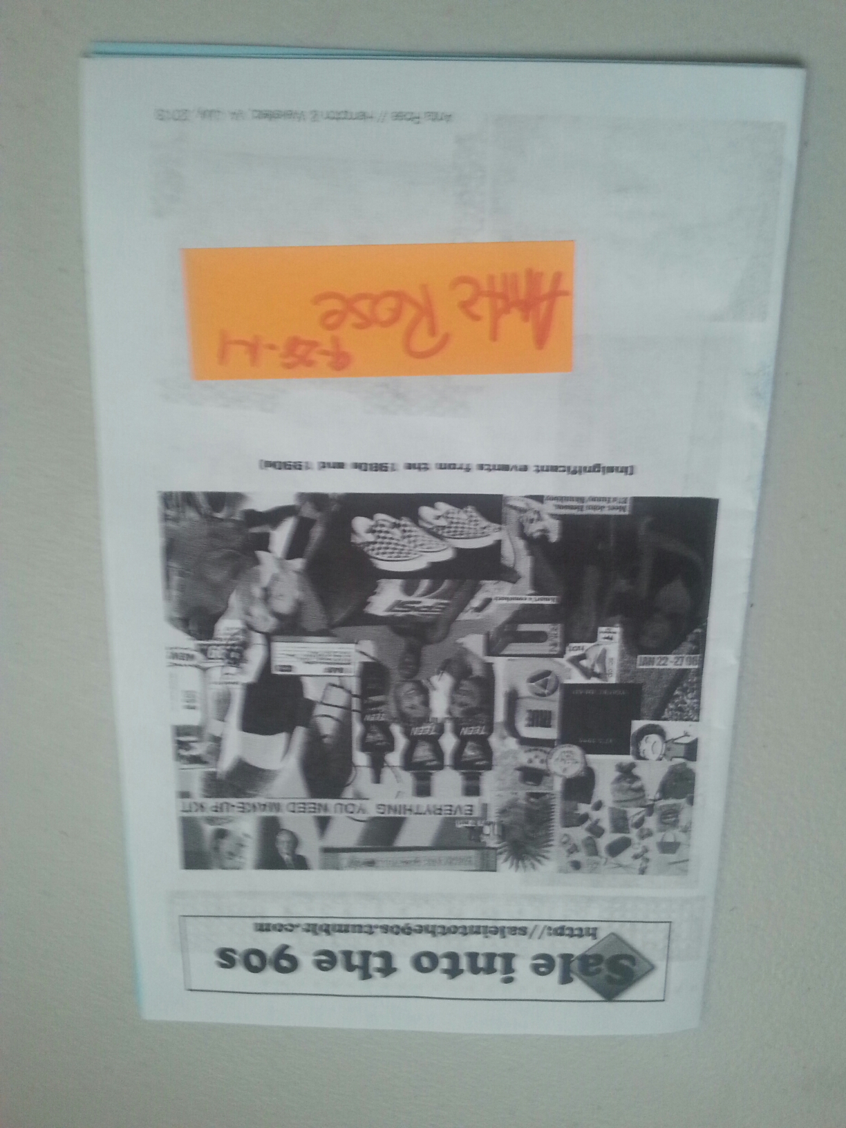 This pink, quad-fold, 1/8 sheet zine is a tiny gem. “Electricity humming/to the bugs singing/heat lightning dancing.” Would love to see other stuff she’s done but I couldn’t find a link to a shop, just a link to her Facebook page. Good job Mara, dig your zine. (A)