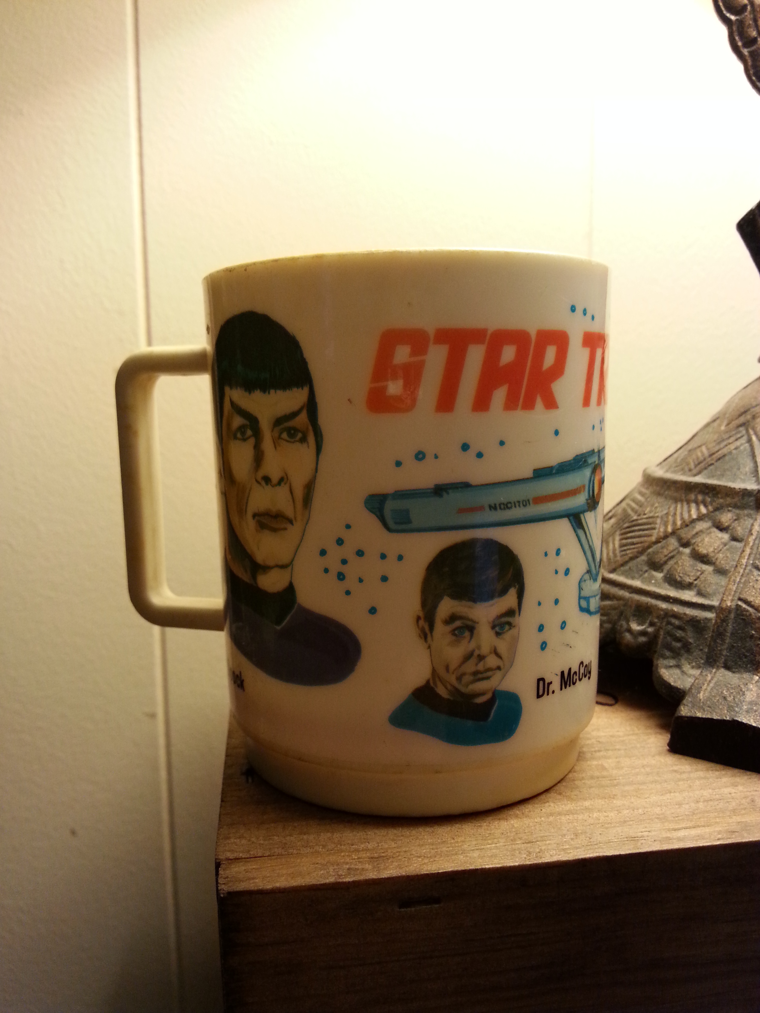 Definitive proof that I’m a trekkie. This is the actual, vintage Star Trek mug that I think I mail-ordered from the back of a cereal box in 70s. On the bottom it says, “DEKA