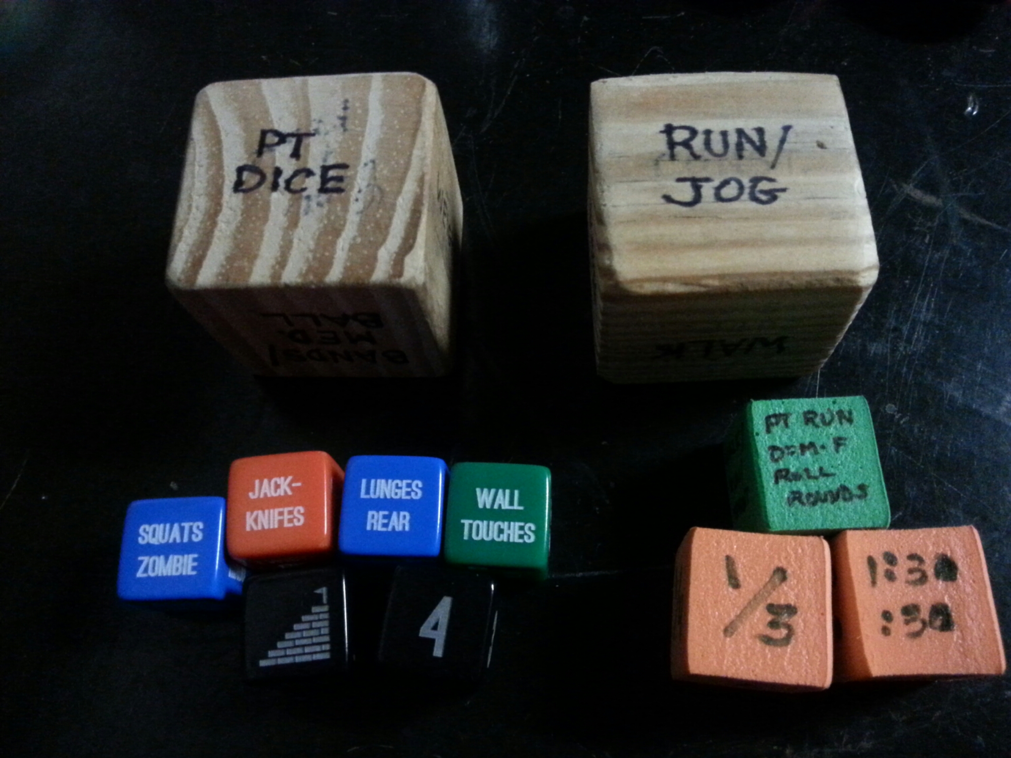 PTDICE (1/2 Pyramid to 8 of Zombie Squats, Jackknifes, Rear Lunges, Wall Touches); FITNESS RUN (As many rounds of Run 1:30 and Push-ups :30 as it takes to cover 1/3 your max comfortable running distance). #cabalfang #WOD