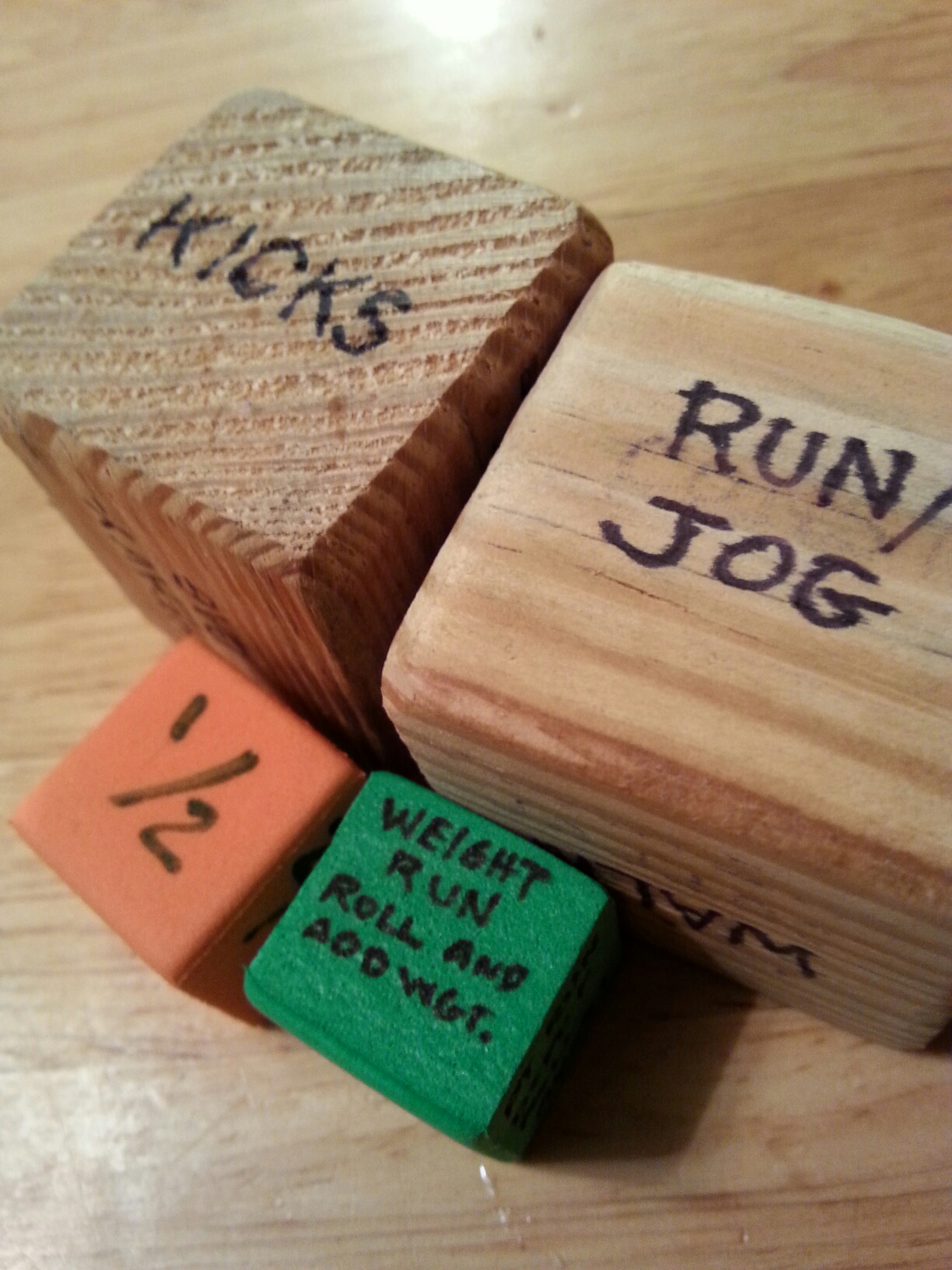 KICKS (150 vs. Heavy bag); RUN (1/2 max comfortable distance w/ #2 hand weights)