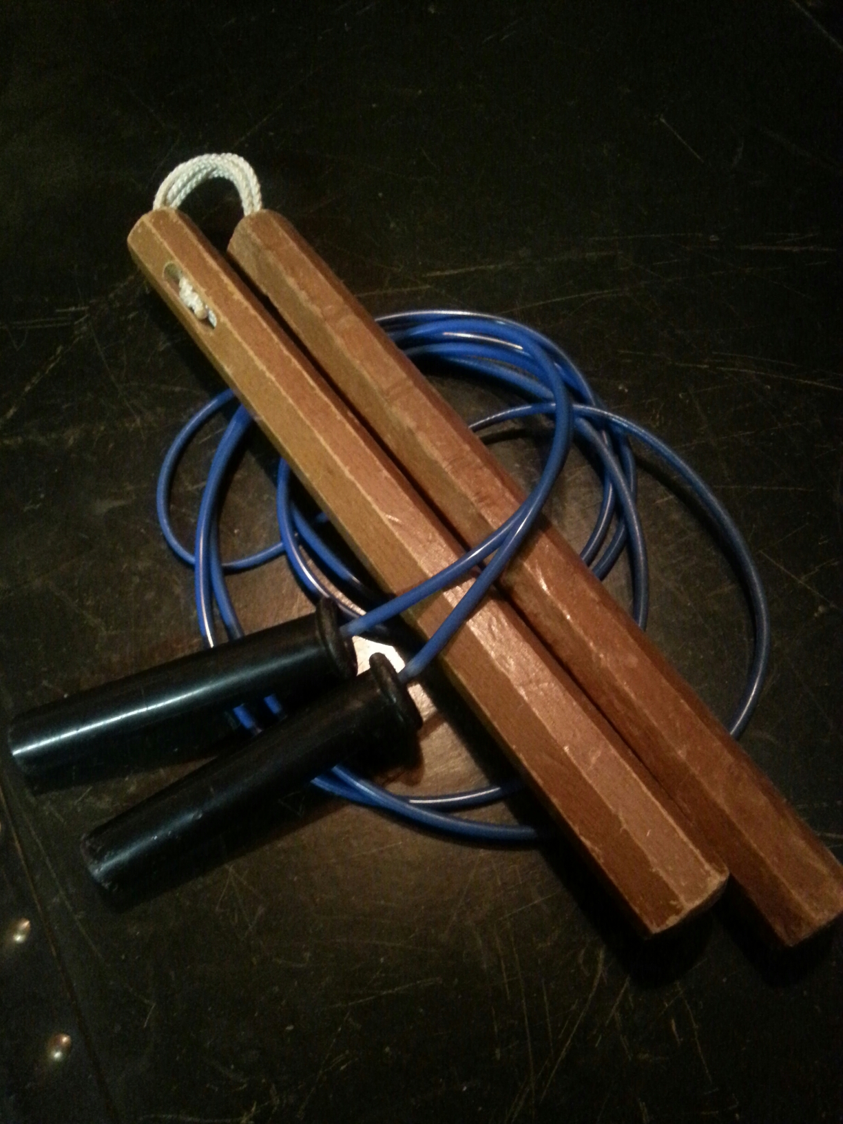 JUMP ROPE (5 rounds of 2:00/1:00, fast for 2:00, double jumps for 1:00); SECONDARY WEAPON (5 rounds of 2:00/1:00, speed for 2:00, max power shots for 1:00) 30 mins total.