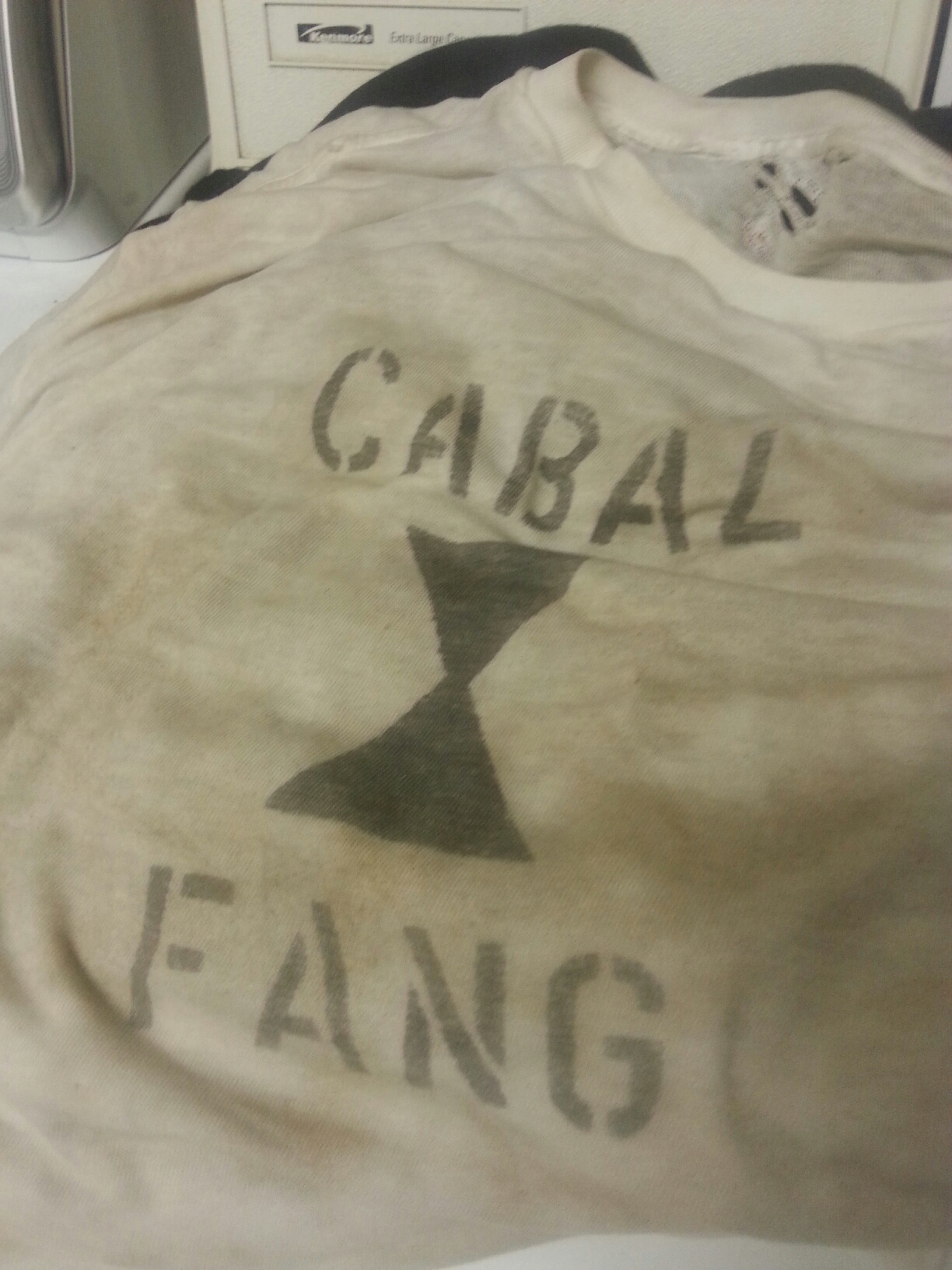 It’s a Cabal Fang t-shirt. The only way to get your hands on one is to practice the martial art known as Cabal Fang. You have to show up and sweat. If you stick around long enough we’ll give you one. You cannot purchase one with any currency other than perspiration, determination, dedication, and friendship.