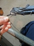 - Inserting hanger and wire in one side. Wire routes toward the top of the tube, hanger goes out the other side