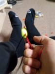 - Cut yourself about a meter of parachute cord. Toast the ends a bit so they don’t unravel.