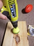 - Drill a hole through the tennis ball. Careful to get it totally oriented to the poles.
