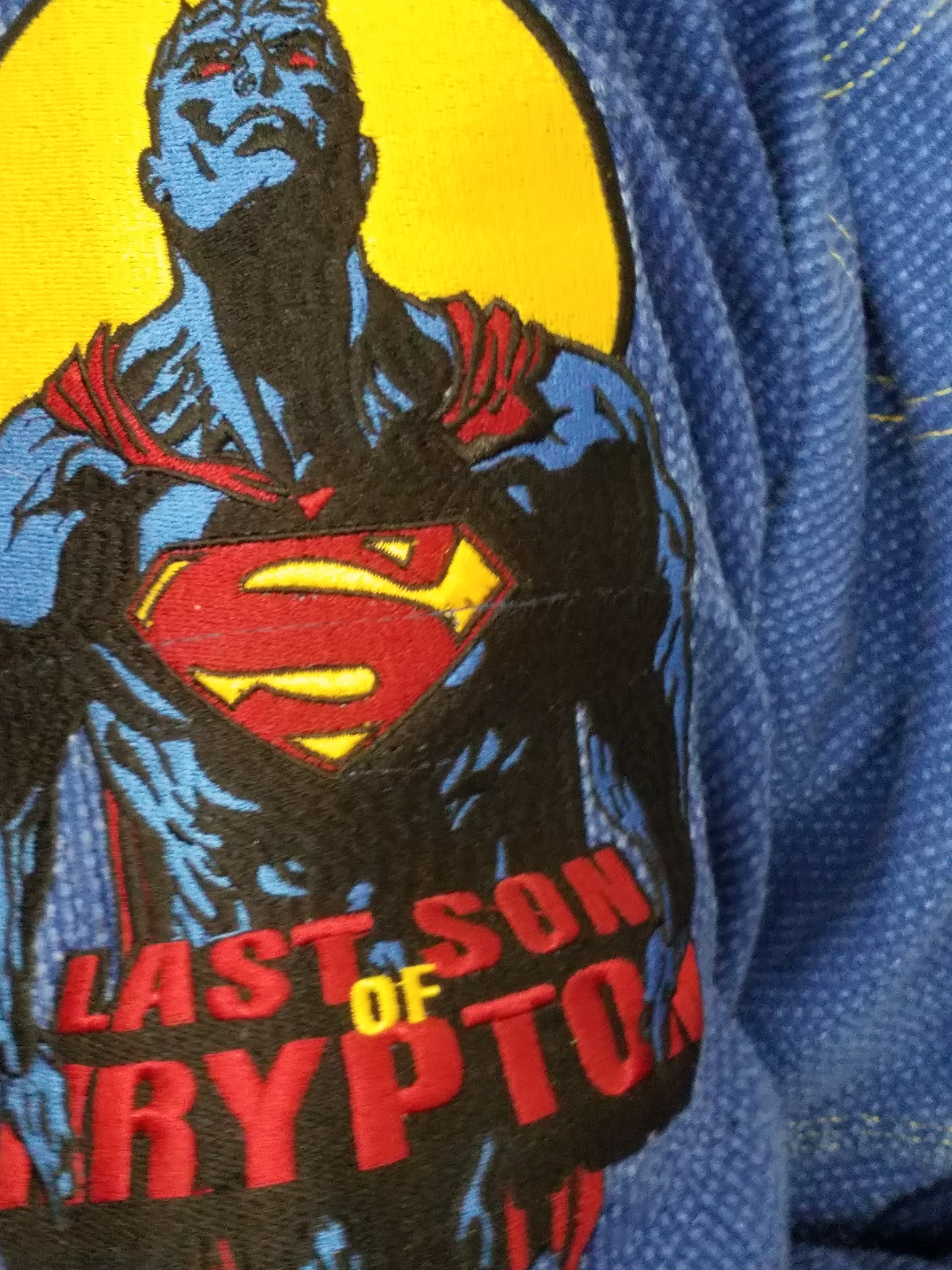 The guy below is Josh Bishop. He has a black belt in TKD and has many years of experience other arts. Oh yeah, and I almost forgot: a BJJ brown belt under Renzo Gracie affiliate Team Mannon in Roanoke. He broke apart the scarf hold for an hour, showing two solid defenses that I aim to try out next time we grapple at the club. Josh is what I like to call ‘the real deal.’ Check out the wicked gi his girlfriend bought for him. He’s not actually Superman, just close.