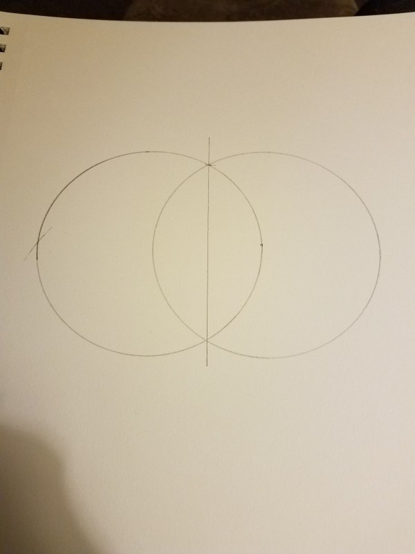 Draw a line connecting the two points where the circles intersect.