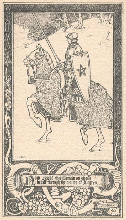 Sir Gawain’s shield bears the five-pointed star, a symbol of truth and revelation. The truth lies in the darkness of the unknown forest. Pursuing the truth requires bravery and the willingness to accept the truth once you find it.