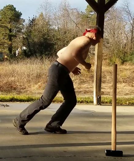 This is a shot of me training shirtless — running sprints before doing some sledgehammer work. If my shriveled up carcass can take off his shirt then you shouldn’t be afraid to.