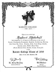 - My Karate College 2019 graduation certificate