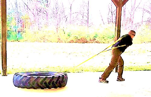 You don’t need a fancy sled to do drag work. This 95 lb tire feels like 200 lbs when being dragged across concrete.