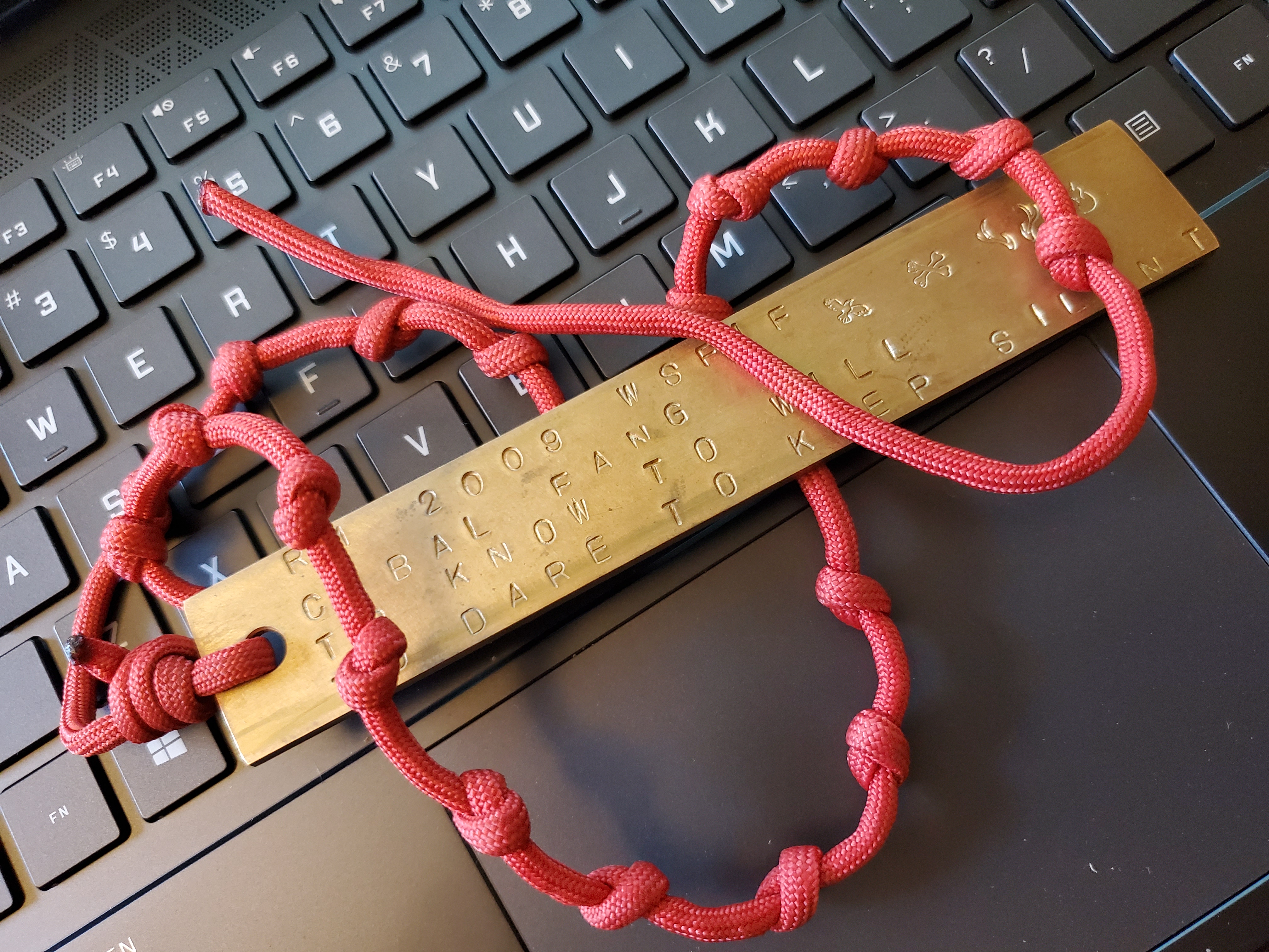 In the martial art of Cabal Fang we keep track of our progress using two primary tools — journaling and the cord and rule program. Click here to view a google doc describing how it works. Picture of my cord and rule on the left.