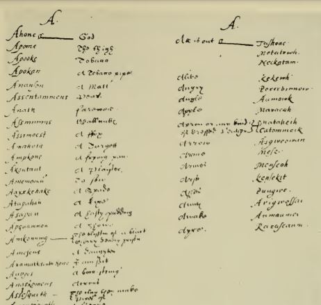Just because they didn’t shy away from a fight doesn’t mean their languages weren’t rich, beautiful and complex. I know this because, as part of this project, I decided I should learn how to speak Powhatan. But I soon found out that Powhatan was one of first indigenous languages to go extinct. Powhatan, or Virginia Algonquian, hasn’t been spoken since the 1790s. Fortunately though, Willam Strachey, an English writer who made it to to Virginia after being stranded in Bermuda by the shipwreck of the Sea Venture, wrote extensively on the language and culture of the Virginia’s natives.¹ We have his word lists, as well as John Smith’s. And thanks to linguists like Frank Siebert and Blair Rudes, who have poured over the work of Stachey and Smith and put together partial reconstructions, we have at least the skeleton of Virginia Algonquian.