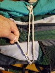 - Tie a bowline in the top end (this could be grommet in a tarp though)