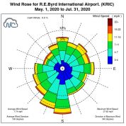 Do you know the prevailing wind direction for your home territory? In my area, the wind most often blows from the south in summer and the north in winter (see wind rose on the right). Find the regional climate center for your state, do a search, and generate the wind roses for you stomping grounds. If you know the ICAO code for the airport climate center nearest you, plug it into the URL from at the WRCC and you can get what you need, or if you’re in the SE, just go the the NCCO. You can’t rely on wind direction if you get lost, but you can use it as a backup, for support of a supposition, to determine if there’s a new weather pattern blowing in, etc.-
