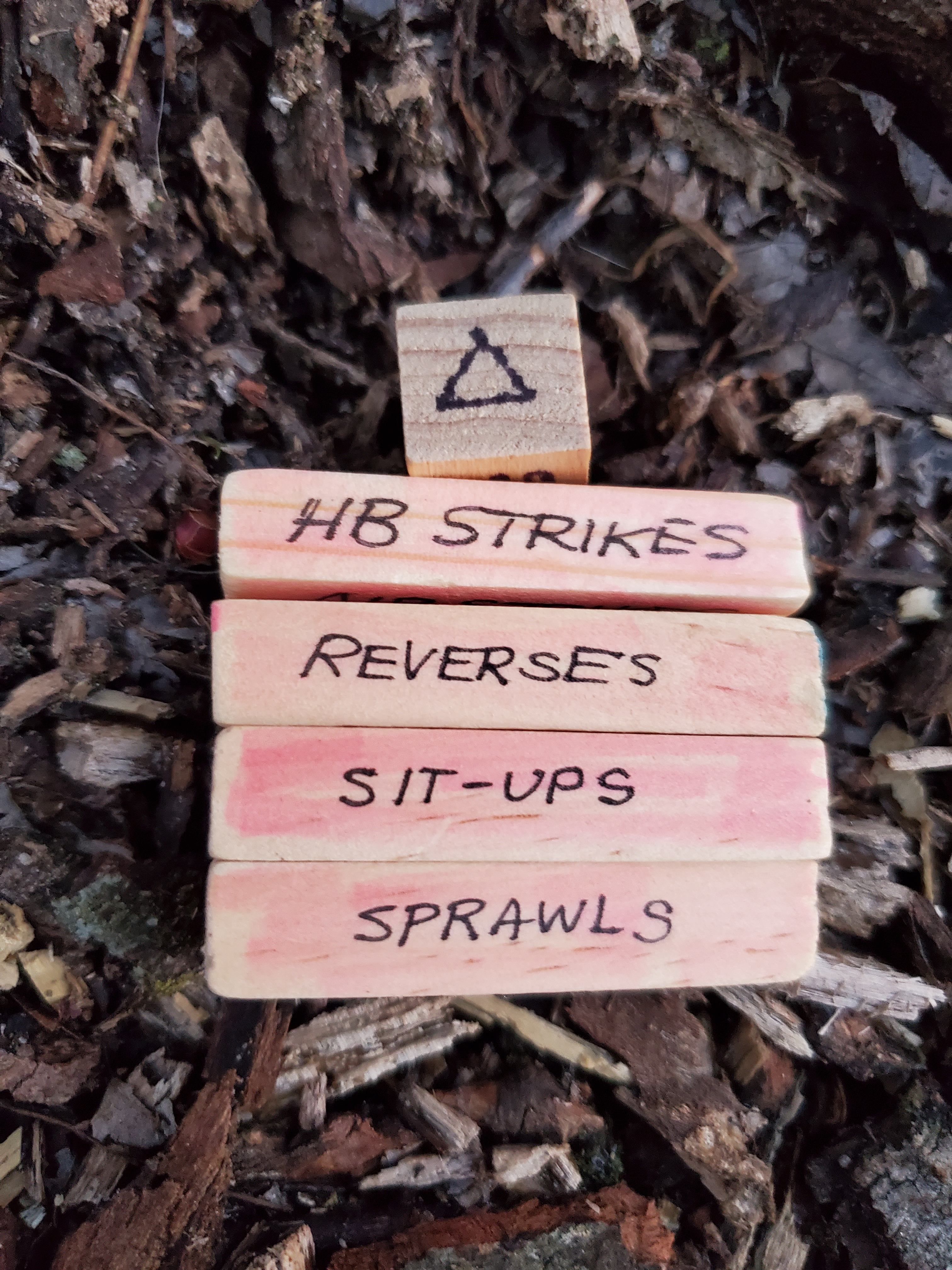 20 min. command and mastery knife pyramid drill. Get a dull training knife and a floor bag or grappling dummy. Set timer for 1o mins. Complete 1 of each of the following four exercises (a) 5 attacks to bag from Top Saddle, roll to bottom, 5 attacks from Bottom Scissors, Reverse back to Top Saddle. Do a Smearing Get-up (don’t forget the push-cut). (b) Sprawl. (c) Sit-ups with a double “X” air slash (step over bag, hook rear toes, and fall back into over/under Short Arm Bar position and work from there). Then do 2 of each, 3, 4, etc. until timer beeps. Finish that set, then descend. 50 Push-up penalty if the business end of the training weapon touches your body at any point during the drill. If any of this doesn’t make sense, sounds like you should enroll in one of my distance learning programs — either Cabal Fang or Bobcat Martial Arts.- Have you done this month’s constitutional twice this week? If not, get it done. If so, reward yourself with something nice, like a long walk, a new book, or a fun fitness tool, etc.