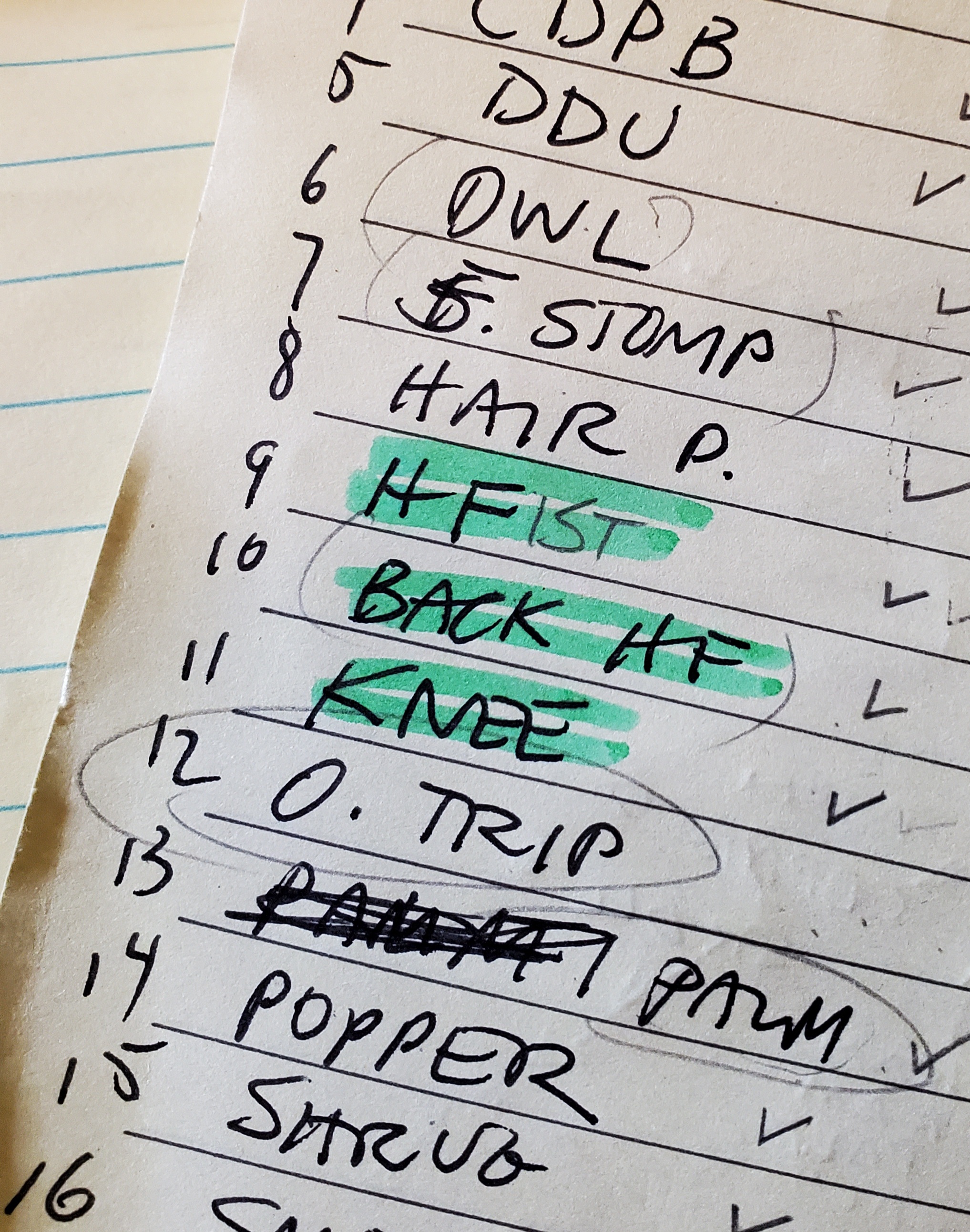 Any idea what these snapshots of my training log clipboard reveal? Any clue there as to what I’m working on?