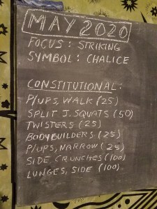 - 10 minutes of crams. Get on your forging post, pell or war-post and work your crams. If you don’t have a post, use your grappling dummy today — and then go put up a post in your gym or back yard tomorrow.