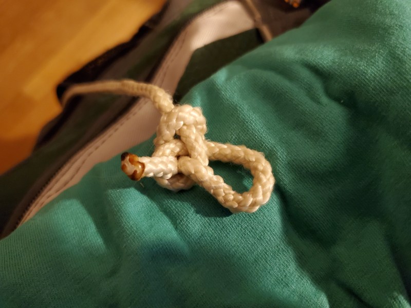Tie a bowline in the top end (this could be grommet in a tarp though)