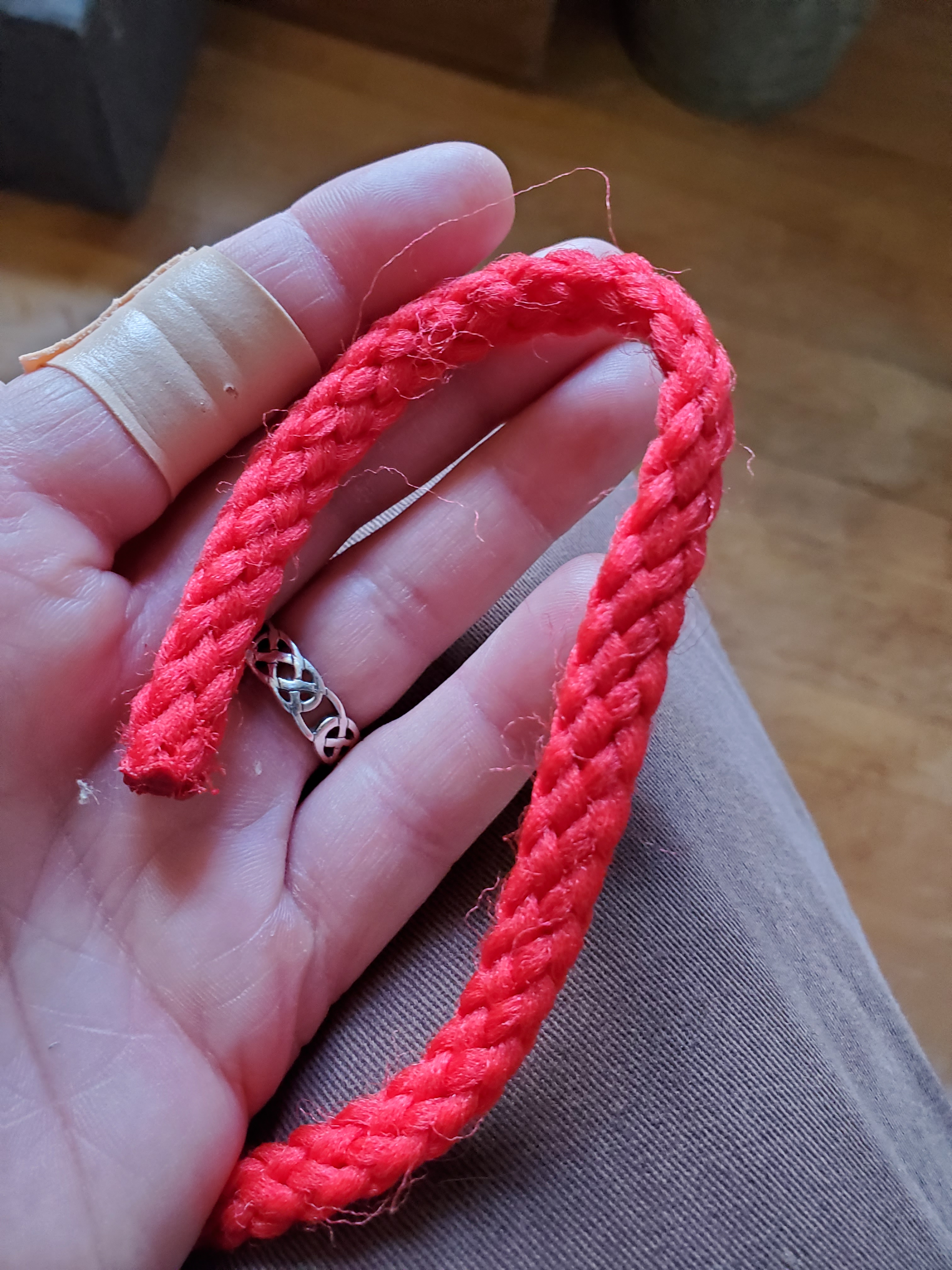 form a bend with the tail on the left